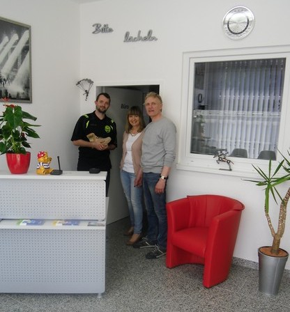 Auf rund 170 Quadratmeter sind helle, modern eingerichtete Räume entstanden. Im freundlichen Empfangs- und Anmeldebereich können unsere Kunden entspannt auf Ihre Behandlung warten.